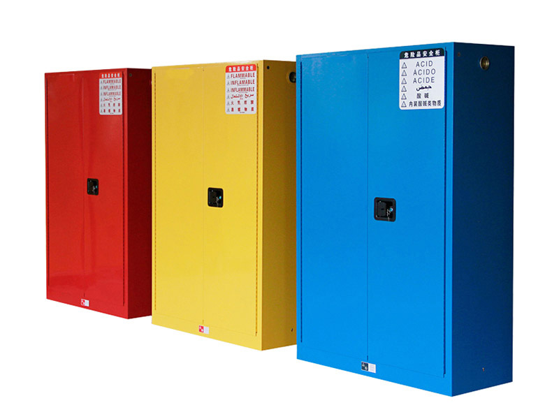 安 全存储柜系类有黄(黄 色指示易燃物品)、红(红色指示可燃物品)、蓝(蓝色指示弱腐蚀性物品)三种颜色,三种颜色的尺寸相同,存放危险品类型不同。